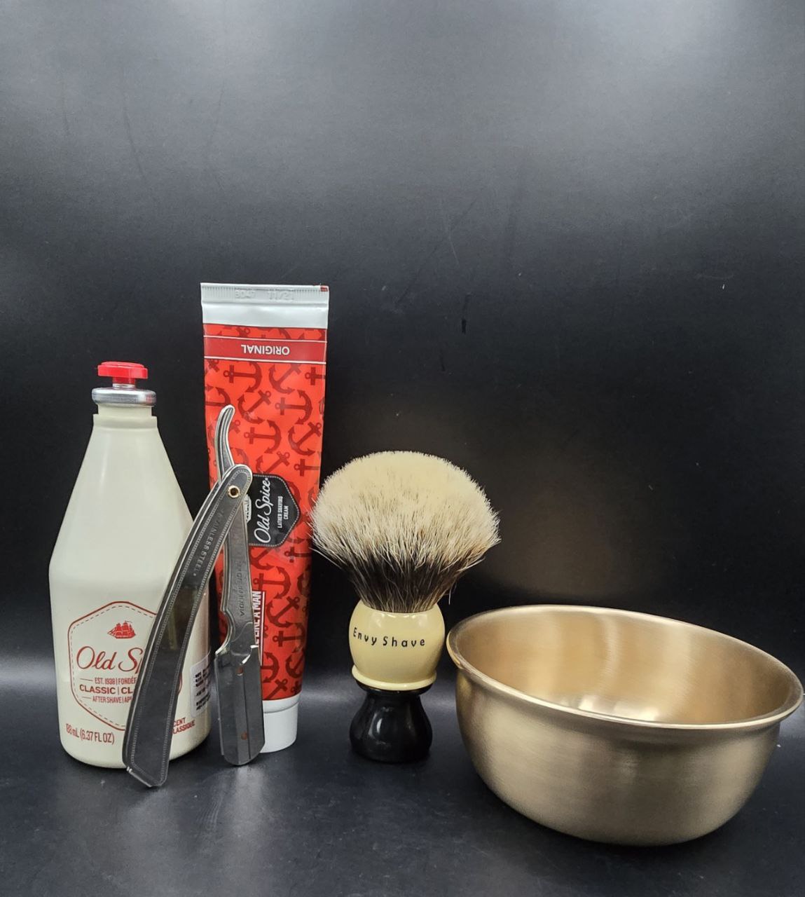this shaving bowl slowly transforms into a deep gold tone.